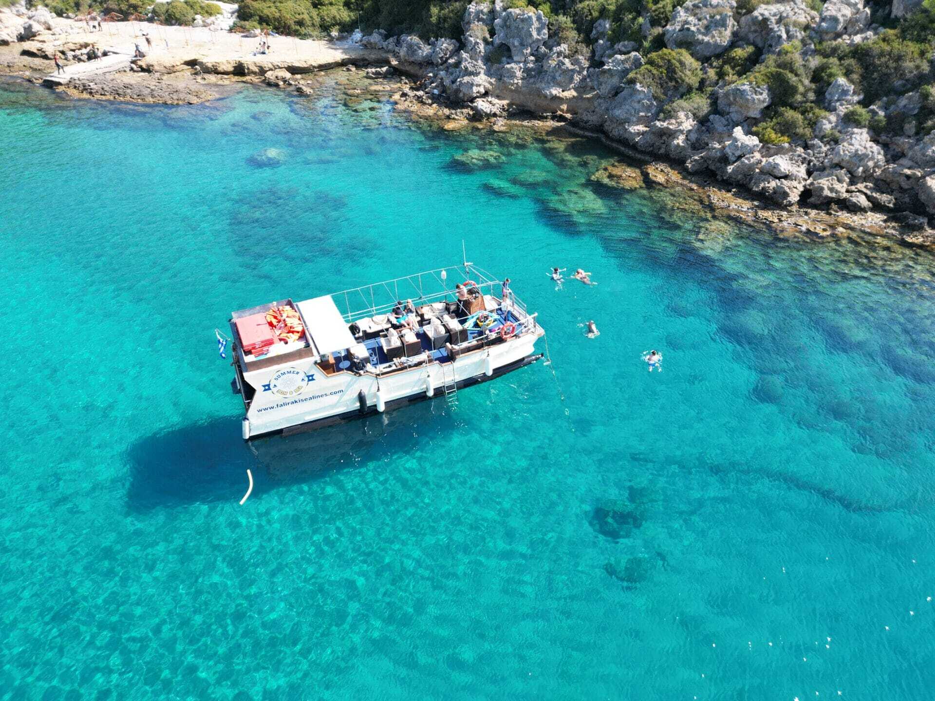 Sit back, soak up the sun and enjoy 3 hours of gentle cruising whilst visiting the most scenic and beautiful bays Rhodes has to offer; swim and snorkel (equipment on board), in 3 stunning bays with unlimited ice-cold drinks, a cocktail of the day and snacks! All for 45€ per person.
